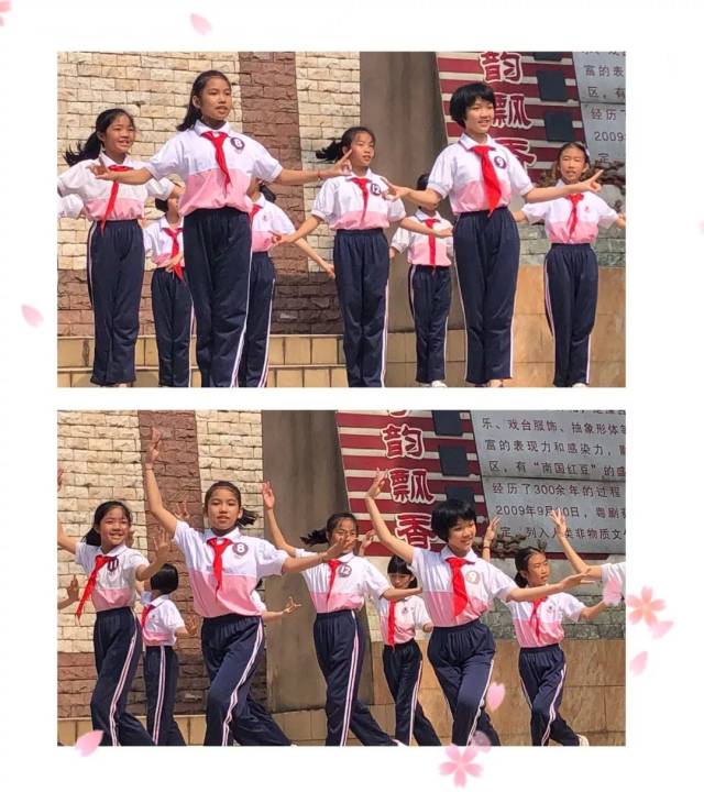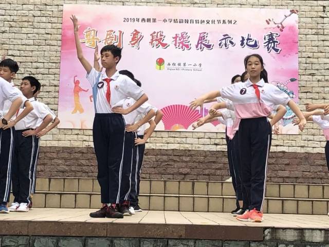 粤剧身段操是该校开发的校本课程之一,十多年来每一届学生都会参与粤剧身段操的学习,对学生的性格养成和形体姿态都有很好的促进作用,是学生感受粤剧艺术的一种载体。通过展示比赛活动,孩子们既磨练了意志,得到了锻炼,也提高了集体主义精神,是一次难得的文化传承与发展的教育活动。